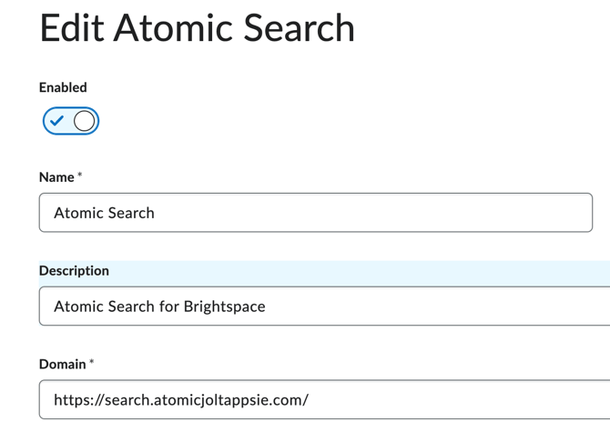 Use the below instructions to configure Atomic Search into your D2L/Brightspace environment.